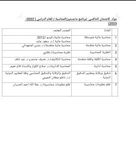 أعزاءنا متابعي صفحة إعلام كلية الادارة والاقتصاد جامعة القادسية ممن يرغبون بالتقديم على الدراسات العليا في كلية الادارة والاقتصاد إليكم مواد الامتحان التنافسي للمتقدمين لدراسة الماجستير في قسم المحاسبة مع خالص دعواتنا لكم بدوام التوفيق والسداد.